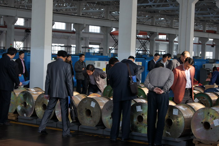 11月10日,安徽省電線電纜商會參觀團來到江潤銅業。在公司營銷部經理陪同下,商會理事們參觀了銅連鑄連軋車間、復合銅線車間、銅絞線車間,深入了解到了高品質的銅加工工藝。此次安徽省電線電纜商會赴電纜城考察,是為發展本地線纜事業引進先進技術。